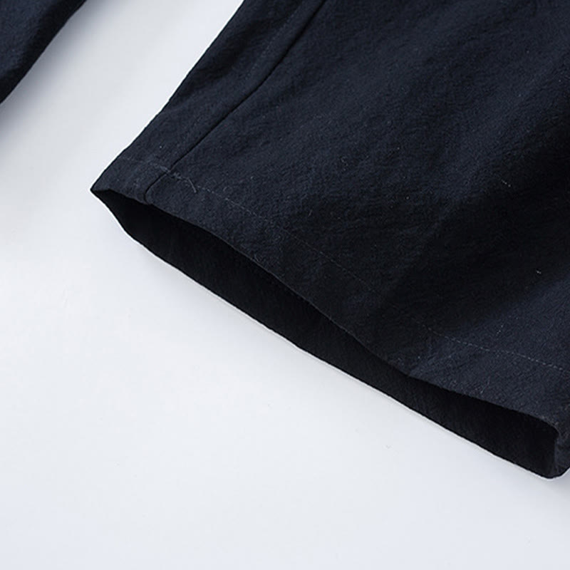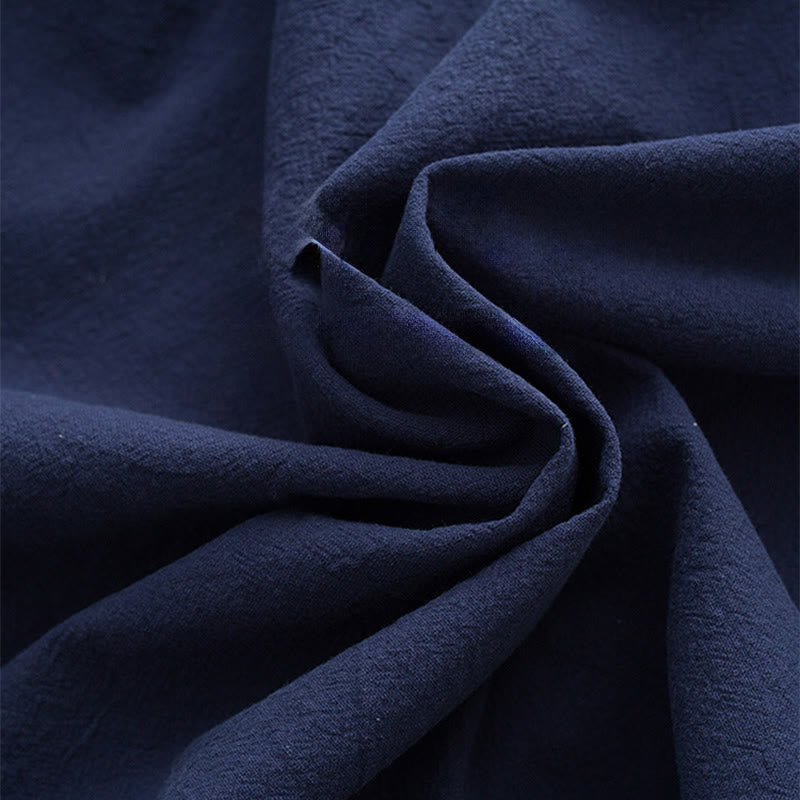 Buddha Stones 2Pcs Tang Suit Men's Frog-Button Cotton Long Sleeve Shirt Pants Set With Pockets