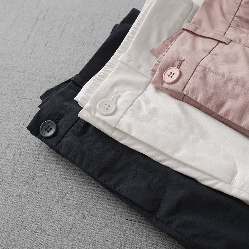 Buddha Stones Casual Plain Polyester Women's 7-8 Length Wide Leg Pants With Pockets