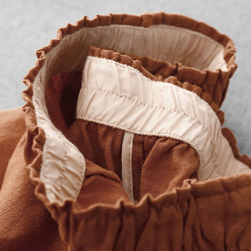 Buddha Stones Casual Plain Rope Women's Cotton 7-8 Length Pants With Pockets