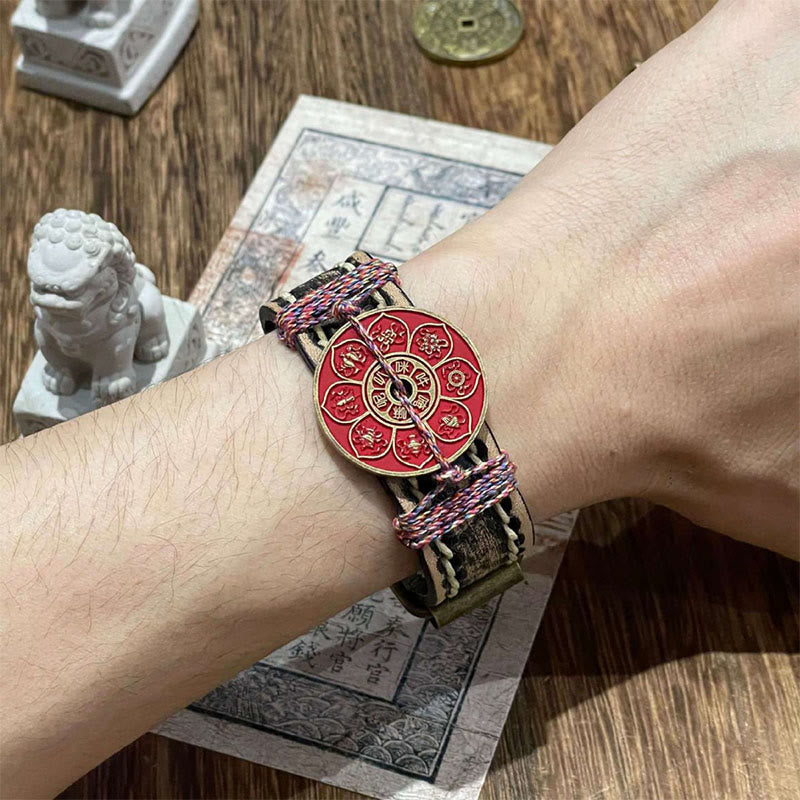Buddha Stones Cinnabar Lotus Om Mani Padme Hum Blessing Leather Watch Band Bracelet