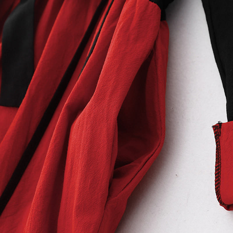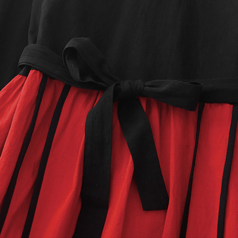 Buddha Stones Color Block Lace-Up Desgin Women's Long Sleeve Midi Dress With Pockets