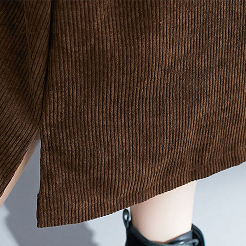 Buddha Stones Commute Crew Neck Women's Sleeveless Cotton Corduroy Midi Dress With Pockets