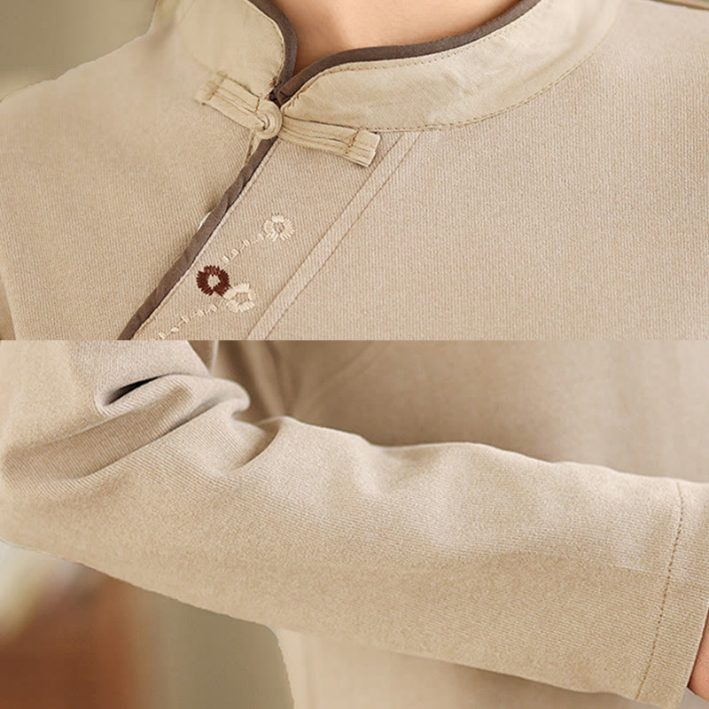 Buddha Stones Frog-button Cotton Women's Long Sleeve Shirt