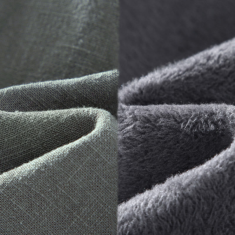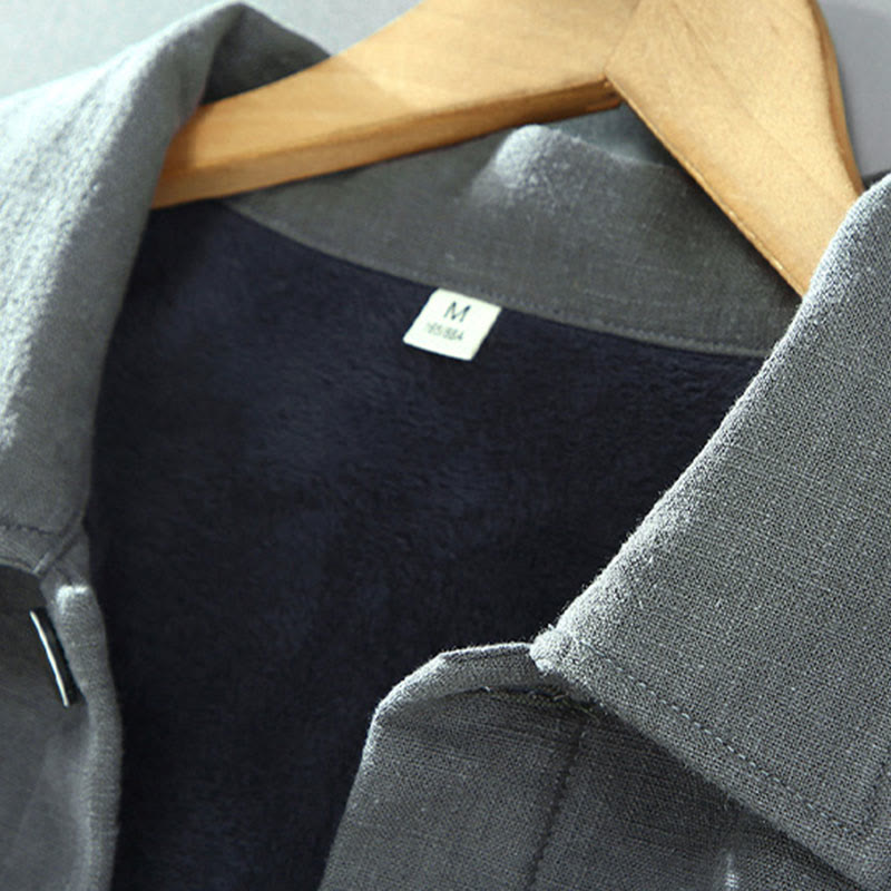 Buddha Stones Men's Plain Long Sleeve Thermal Fleece-Lined Ramie Linen Cotton Jacket With Pockets