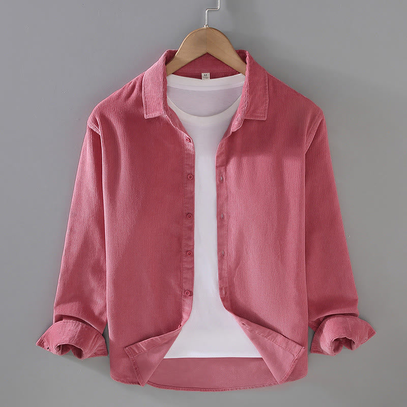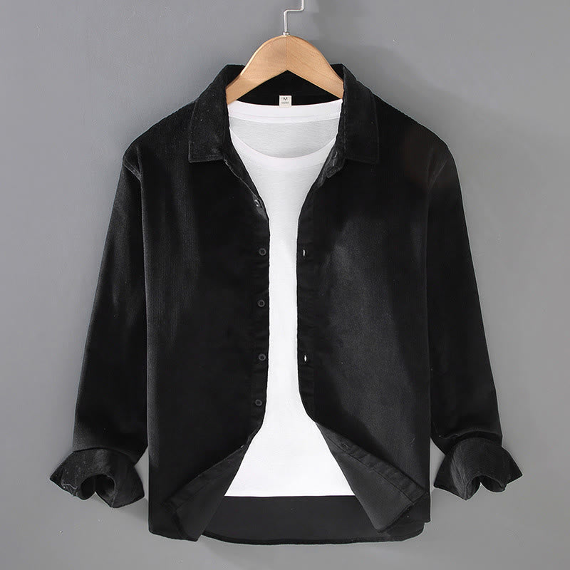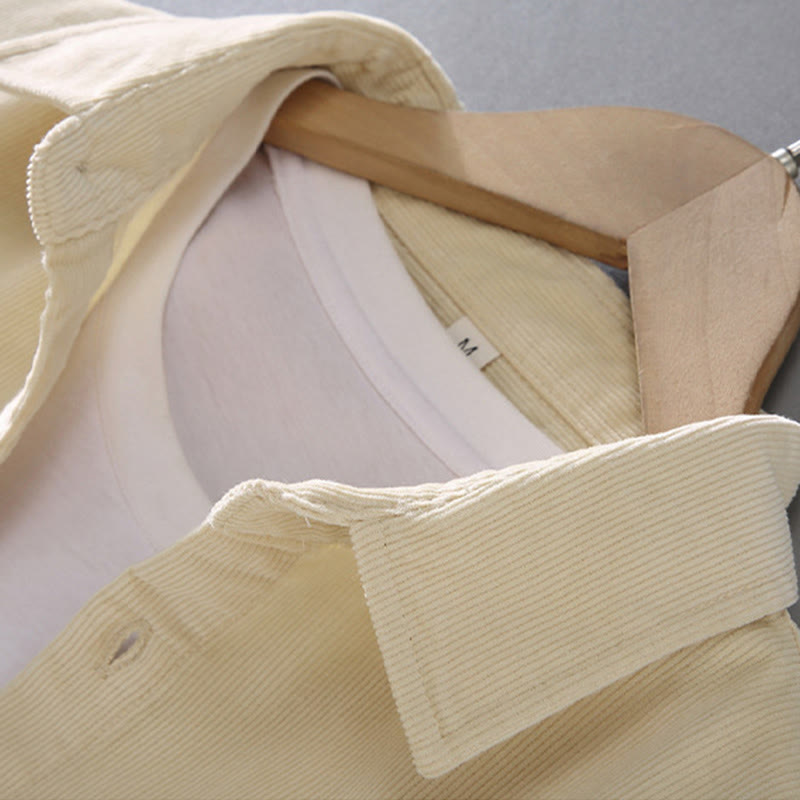 Buddha Stones Men's Solid Color Buttons Design Long Sleeve Pure Cotton Corduroy Shirt