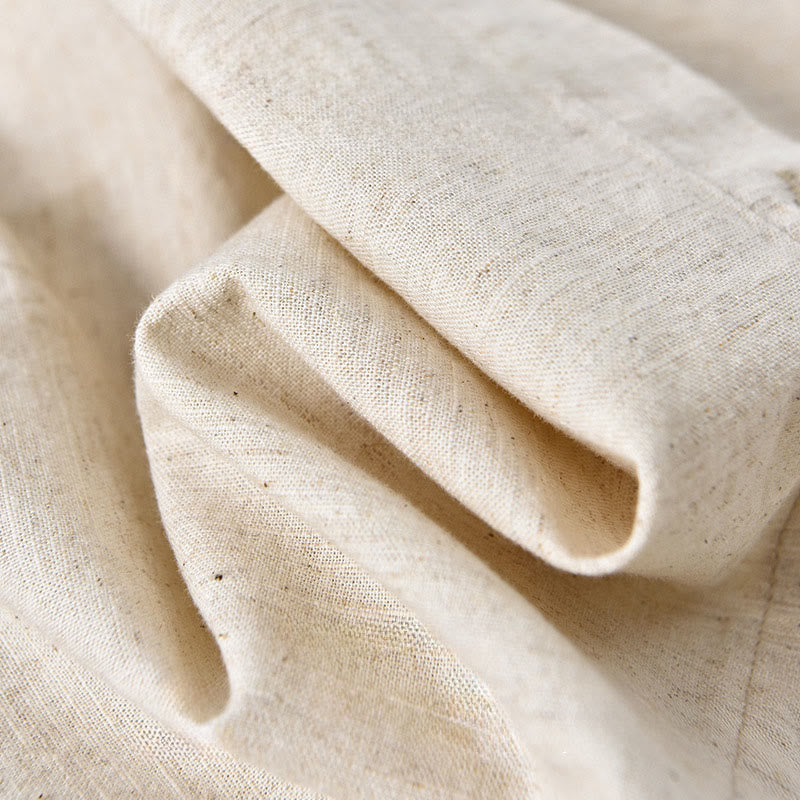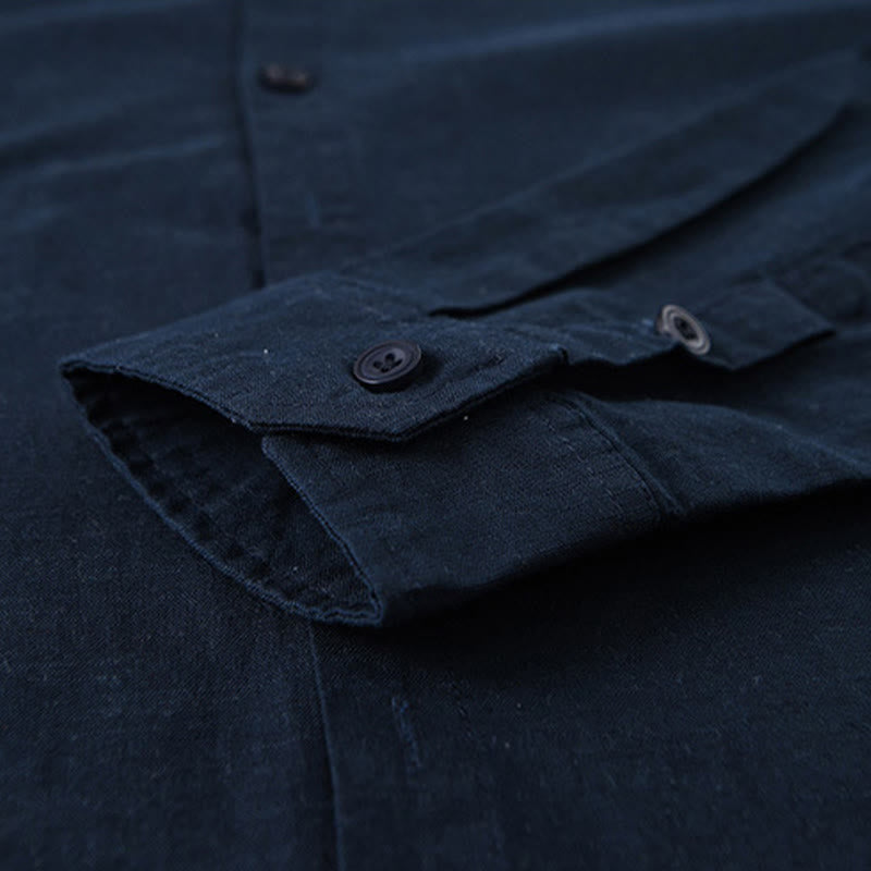 Buddha Stones Men's Spring Pure Color Stand Collar Cotton Linen Long Sleeve Shirt