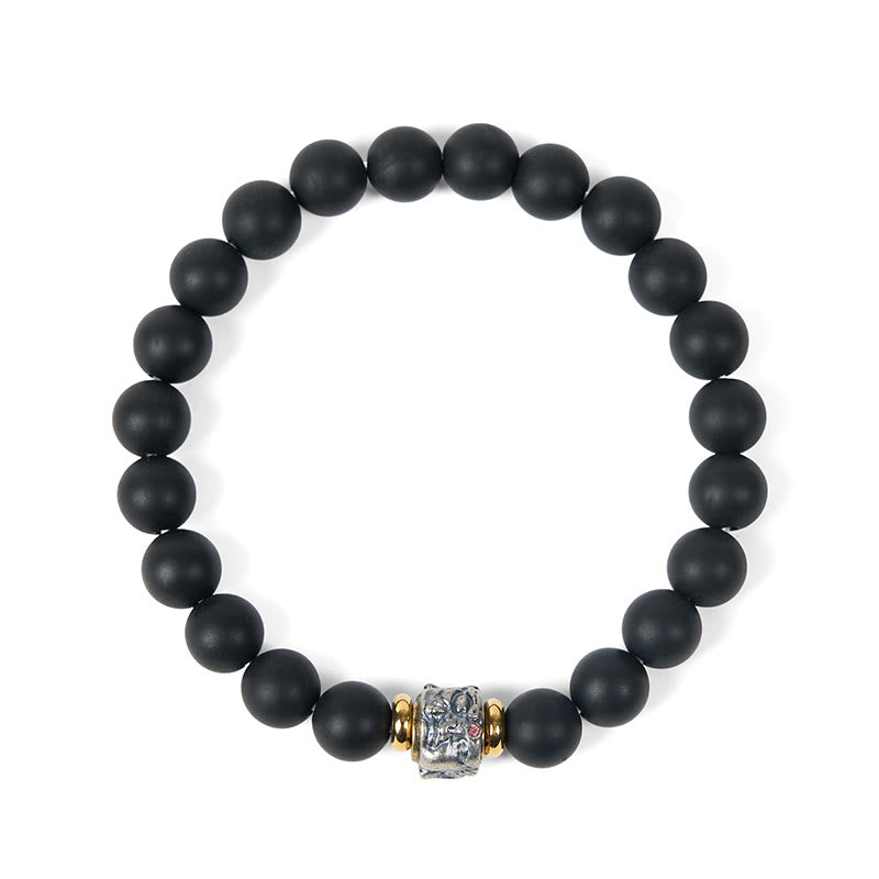 Buddha Stones Natural Frosted Black Onyx Buddha Face Support Bracelet