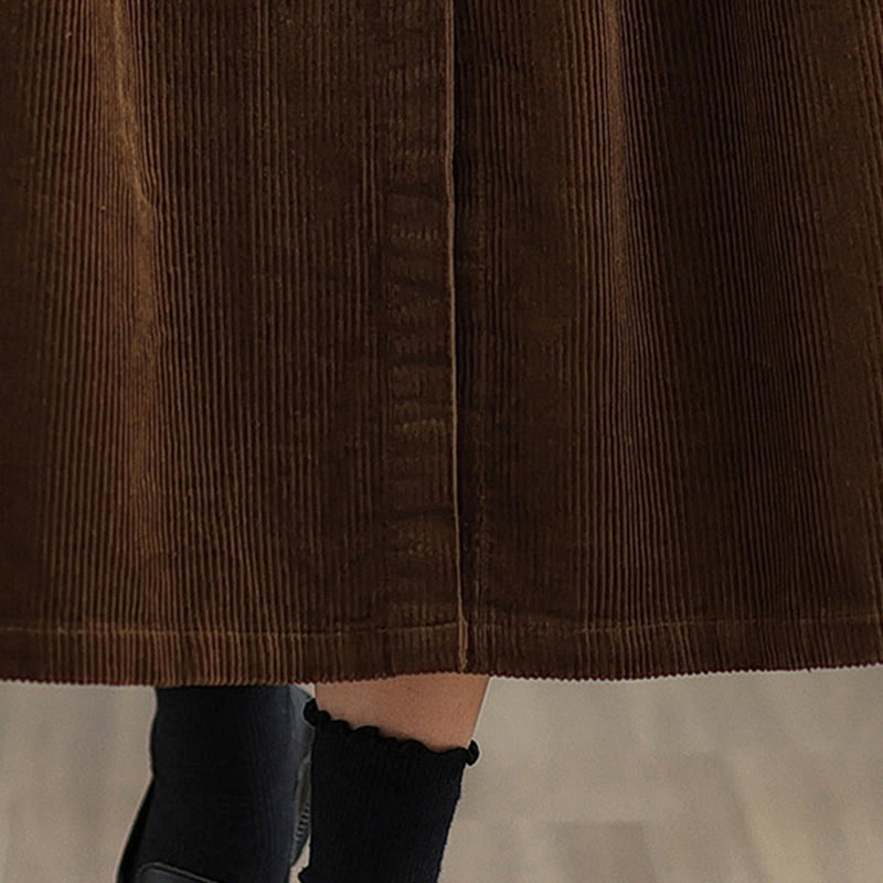 Buddha Stones Plain Buttons Long Sleeve Women's Cotton Corduroy Coat With Pockets