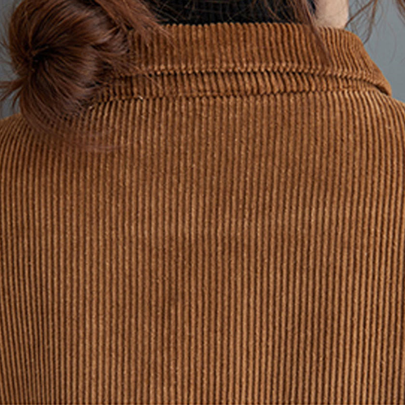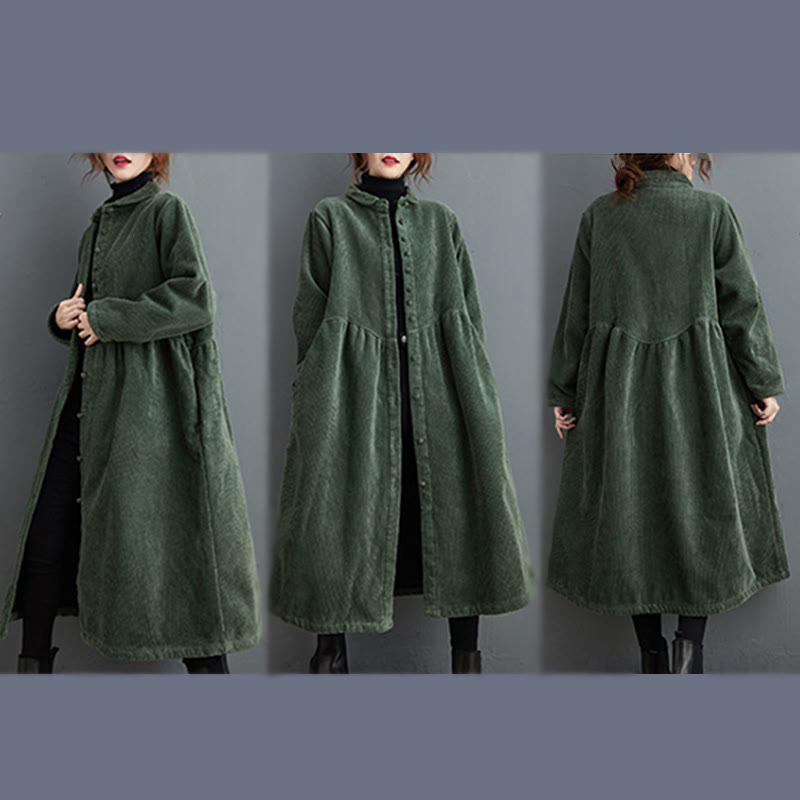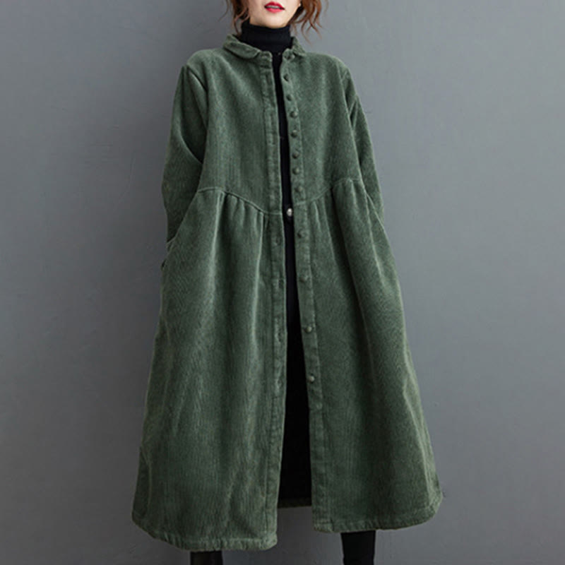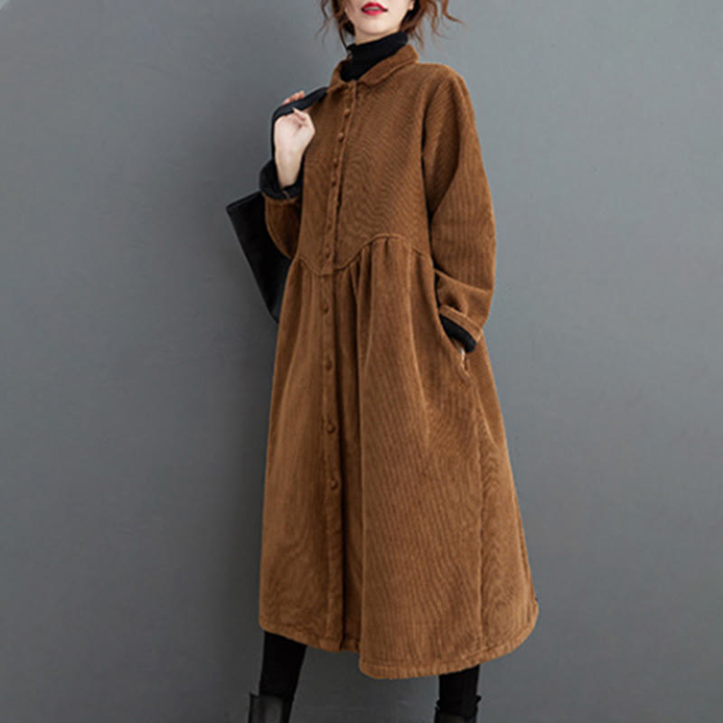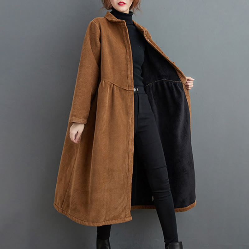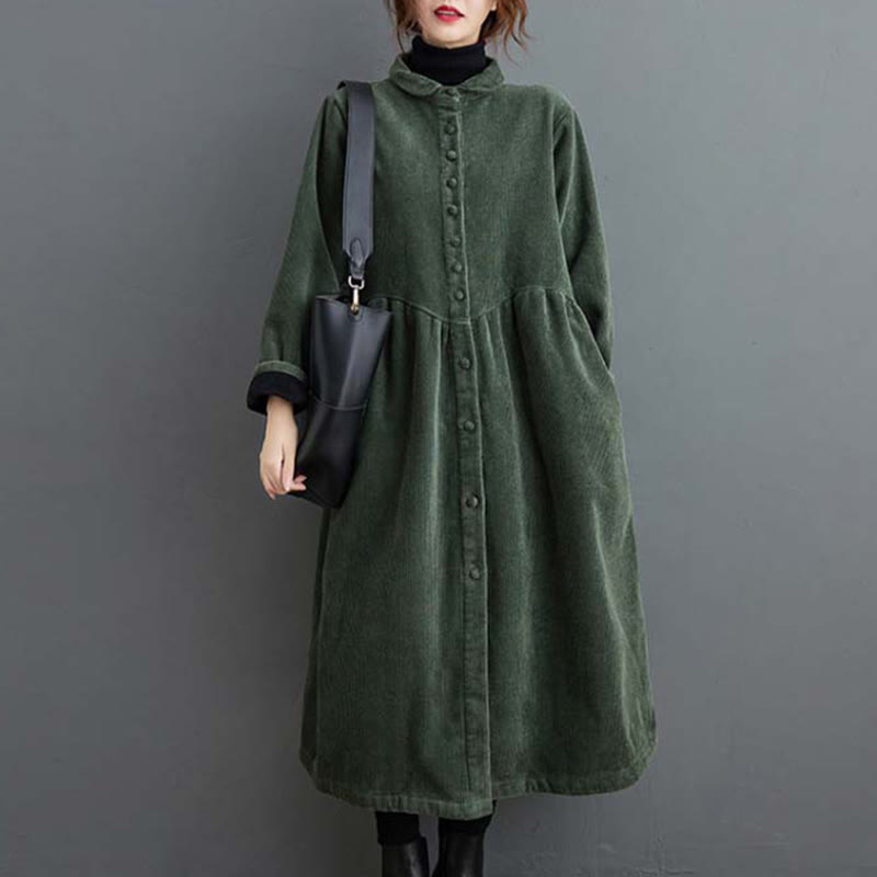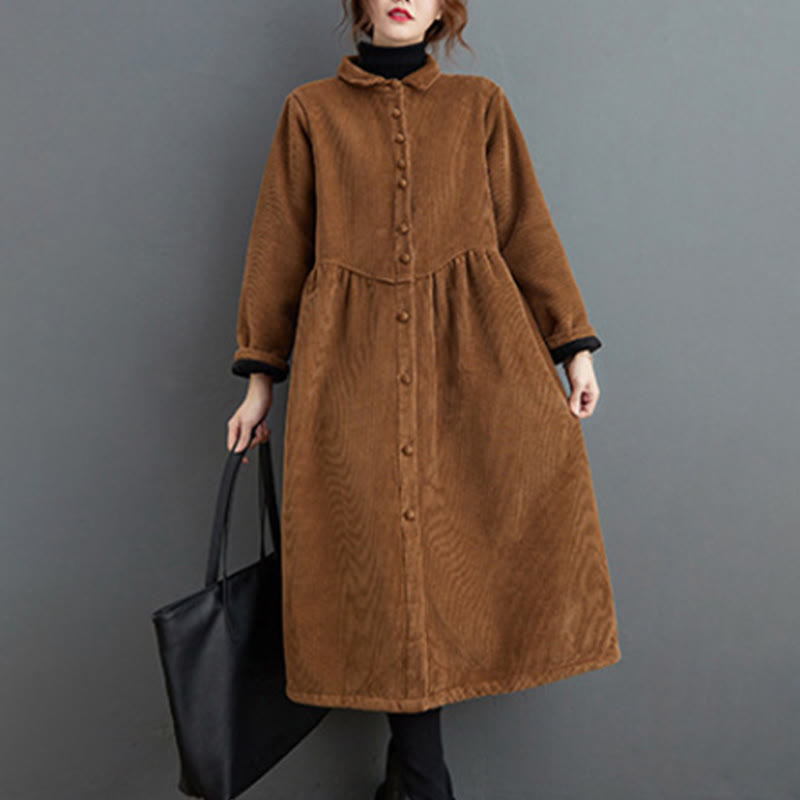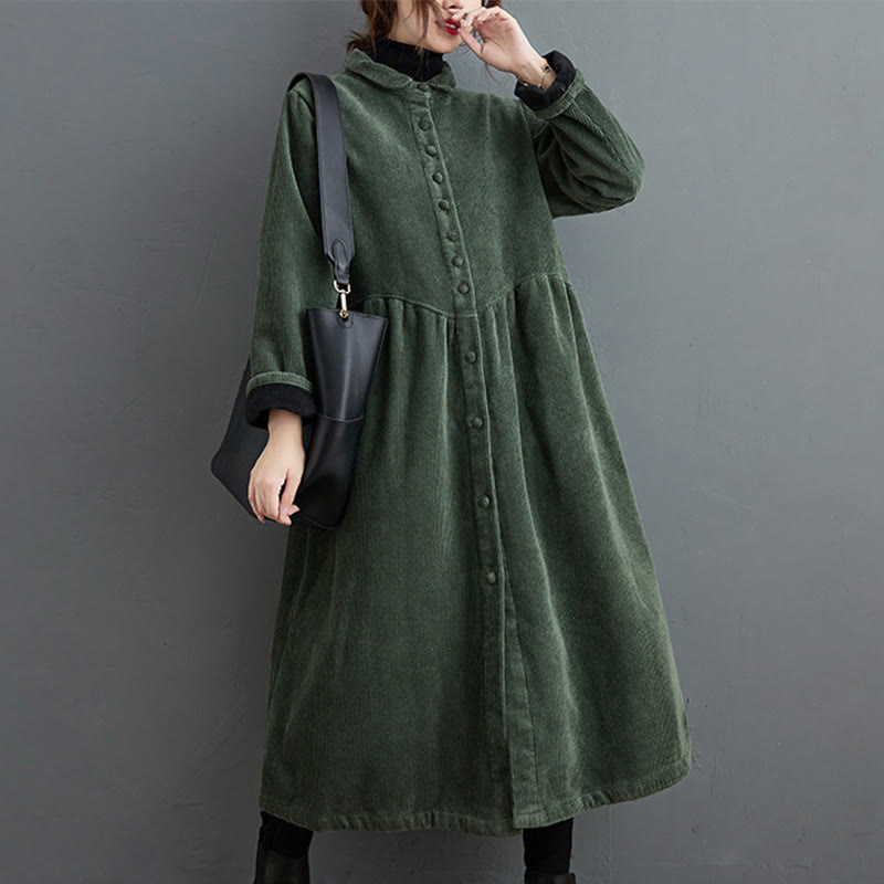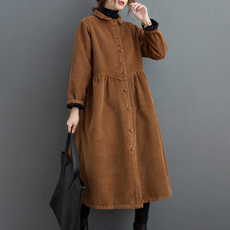 Buddha Stones Plain Buttons Long Sleeve Women's Cotton Corduroy Fleece-Lined Coat With Pockets