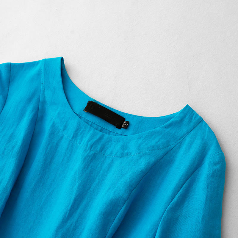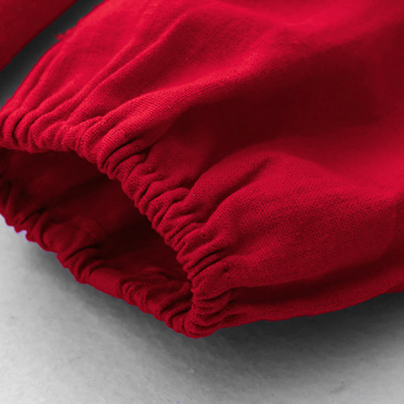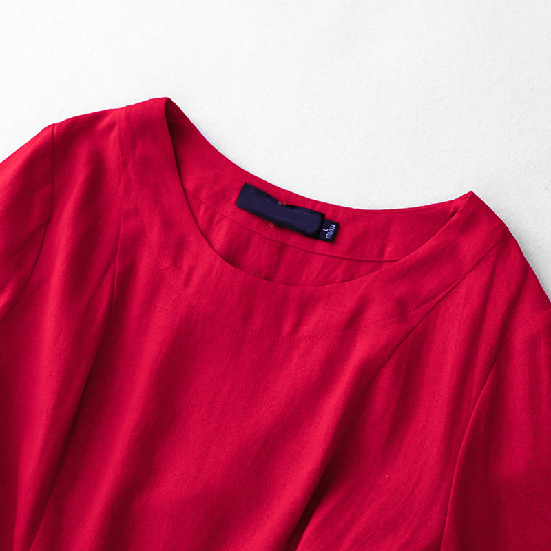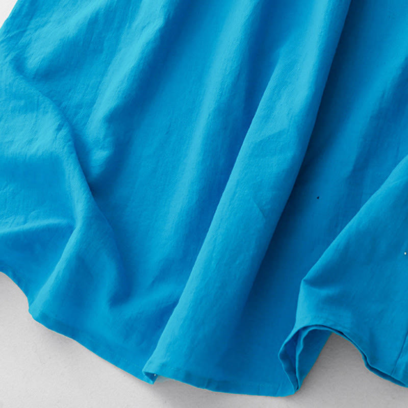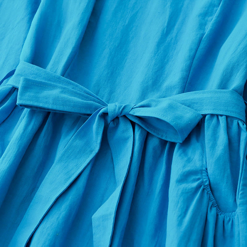Buddha Stones Plain Long Sleeve Lace-up Desgin Women's Cotton Midi Dress With Pockets