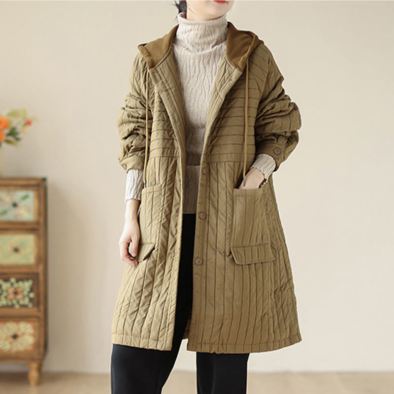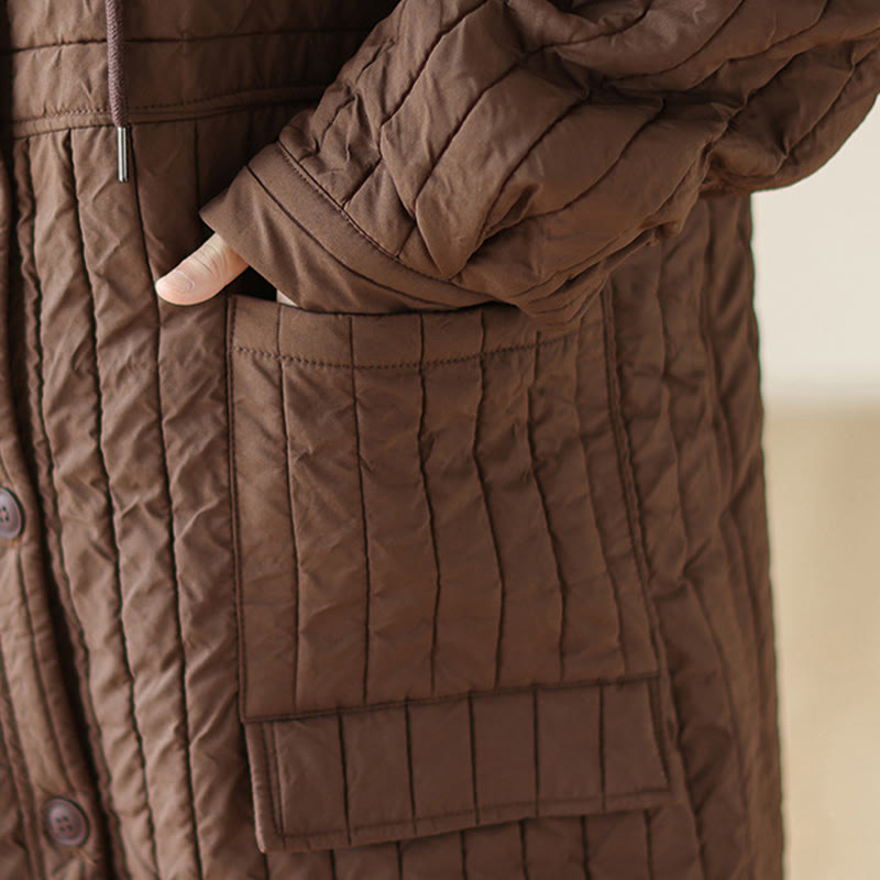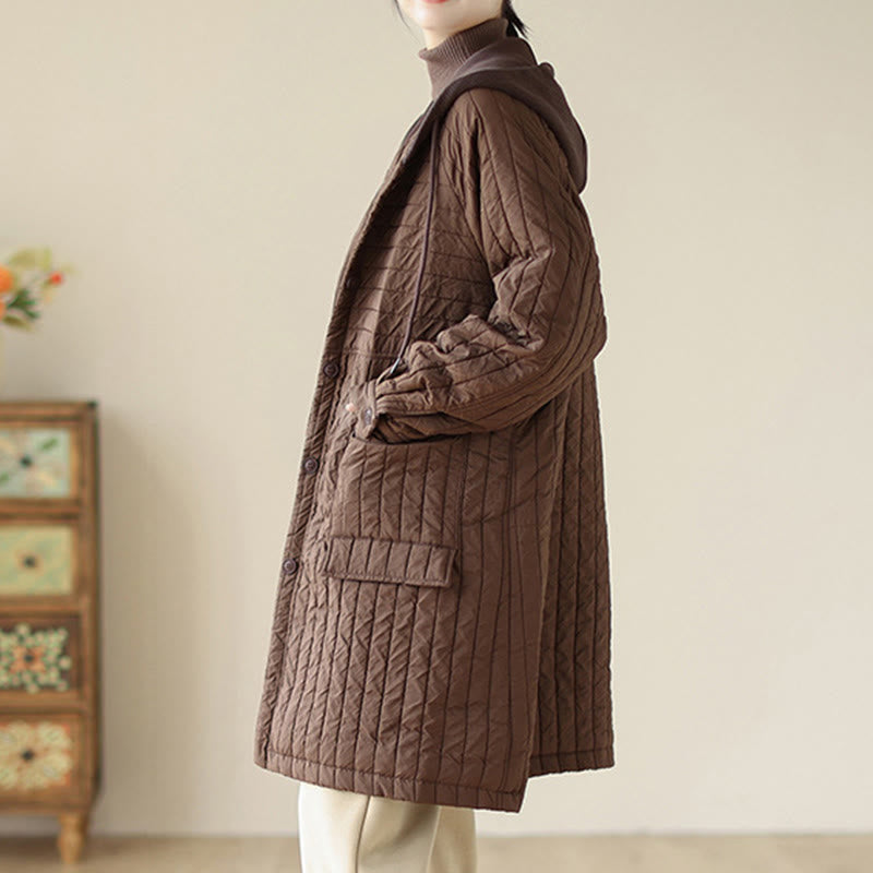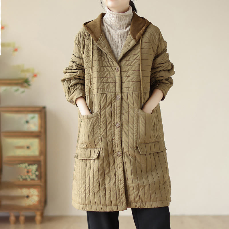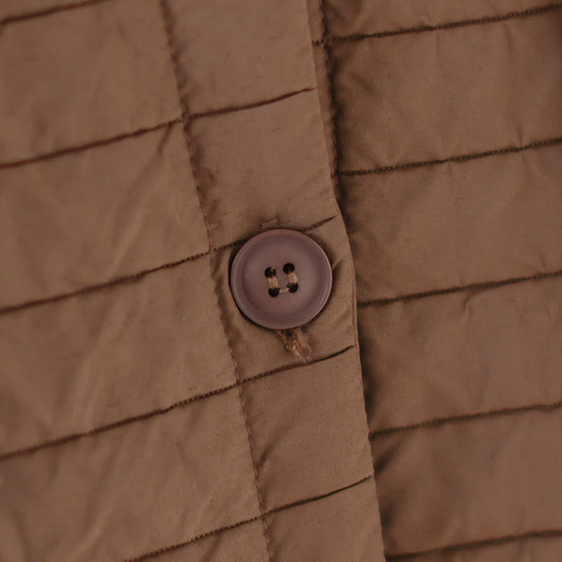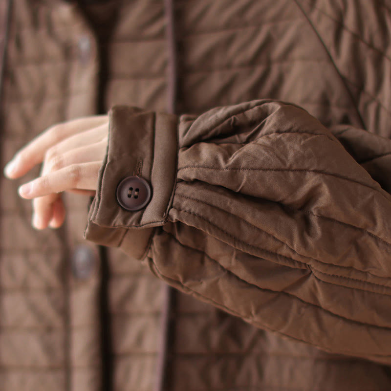 Buddha Stones Plain Notched Women's Cotton Padded Coat With Pockets