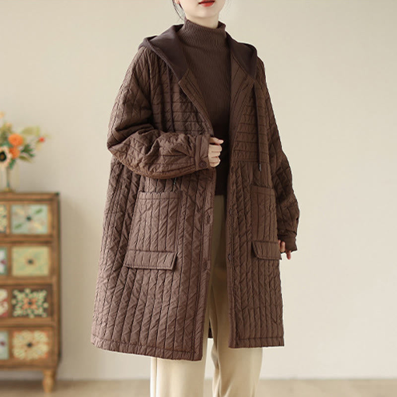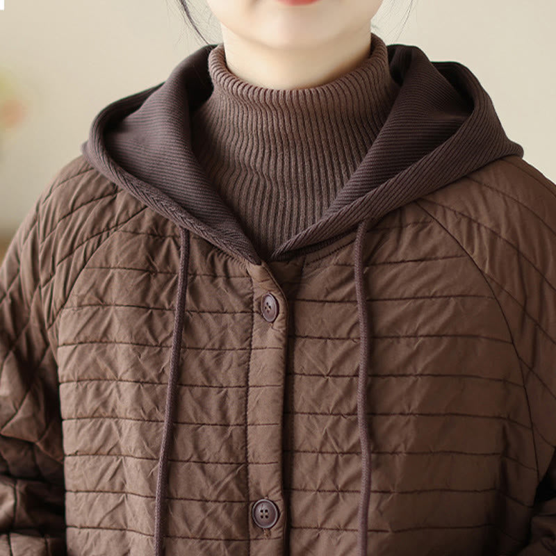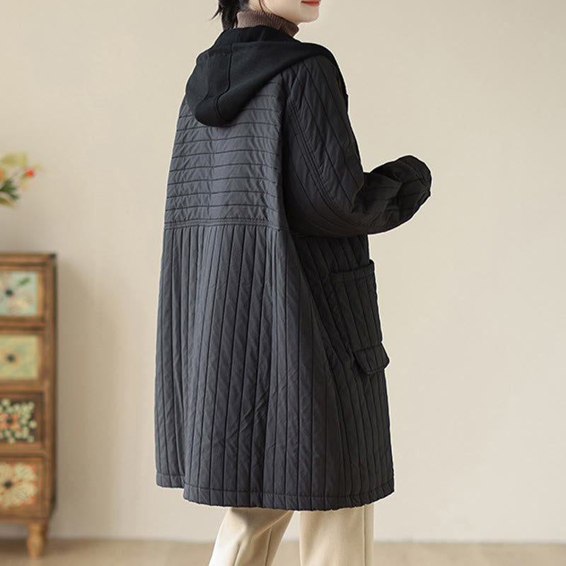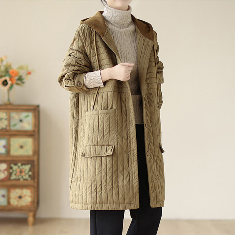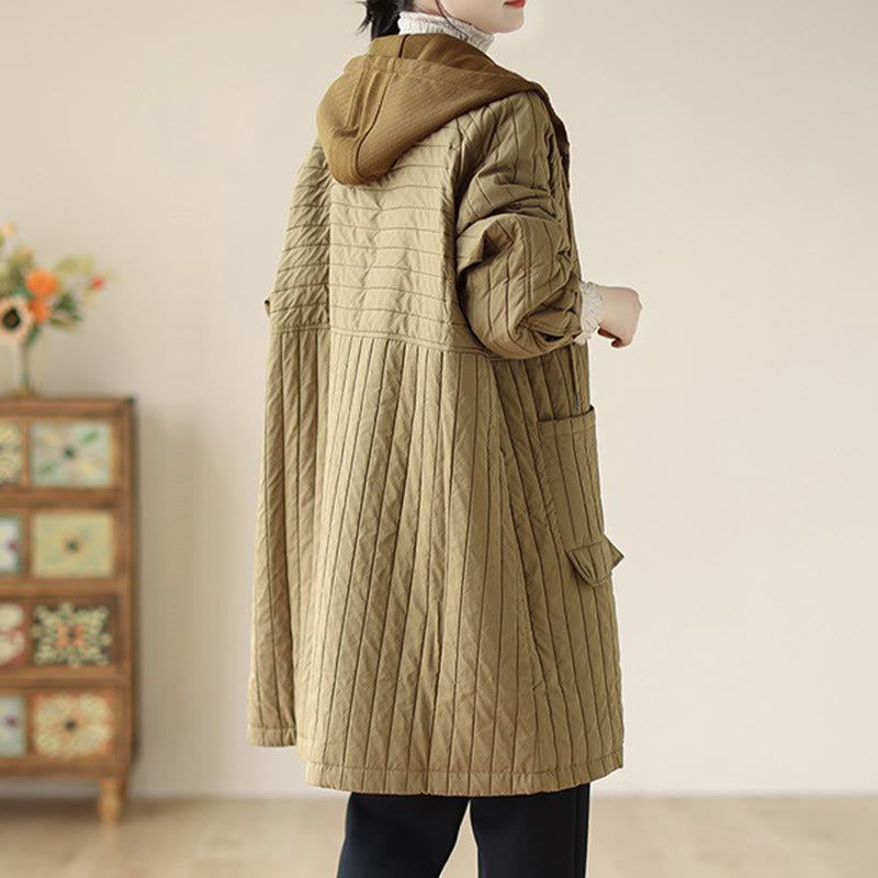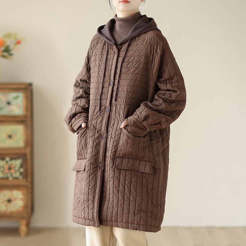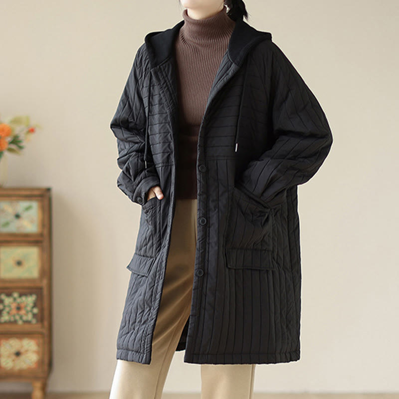Buddha Stones Plain Notched Women's Cotton Padded Coat With Pockets