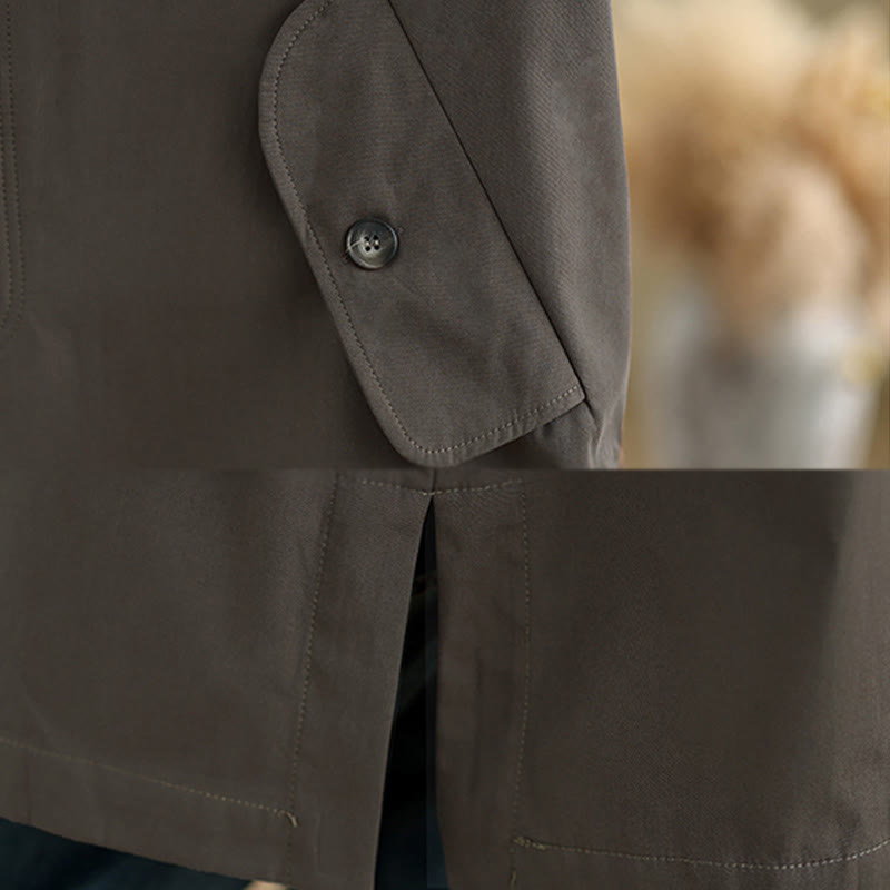 Buddha Stones Plain Patched Women's Long Sleeve Cargo Cotton Jacket With Pocket