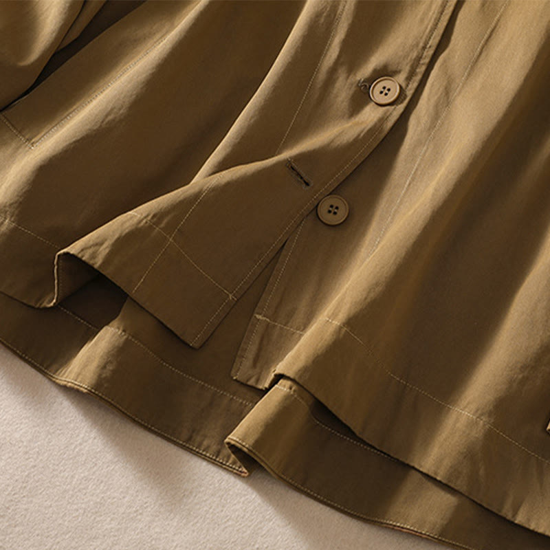 Buddha Stones Pure Color Hooded Women's Long Sleeve Cotton Jacket With Pockets