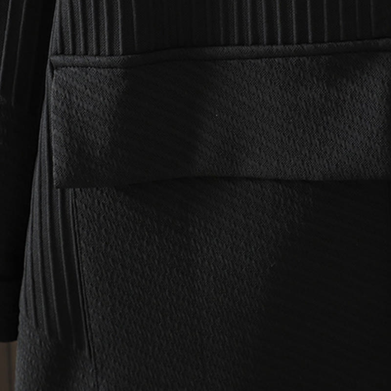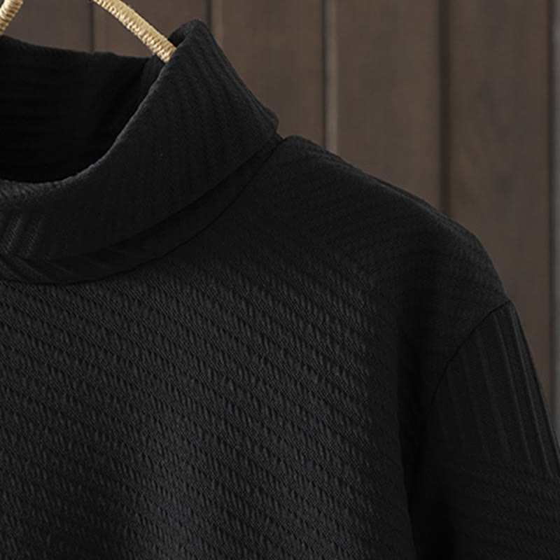 Buddha Stones Pure Color Irregular Design Cotton Turtleneck Long Sleeve Midi Dress With Pocket