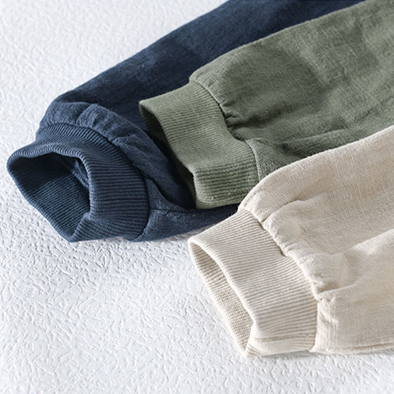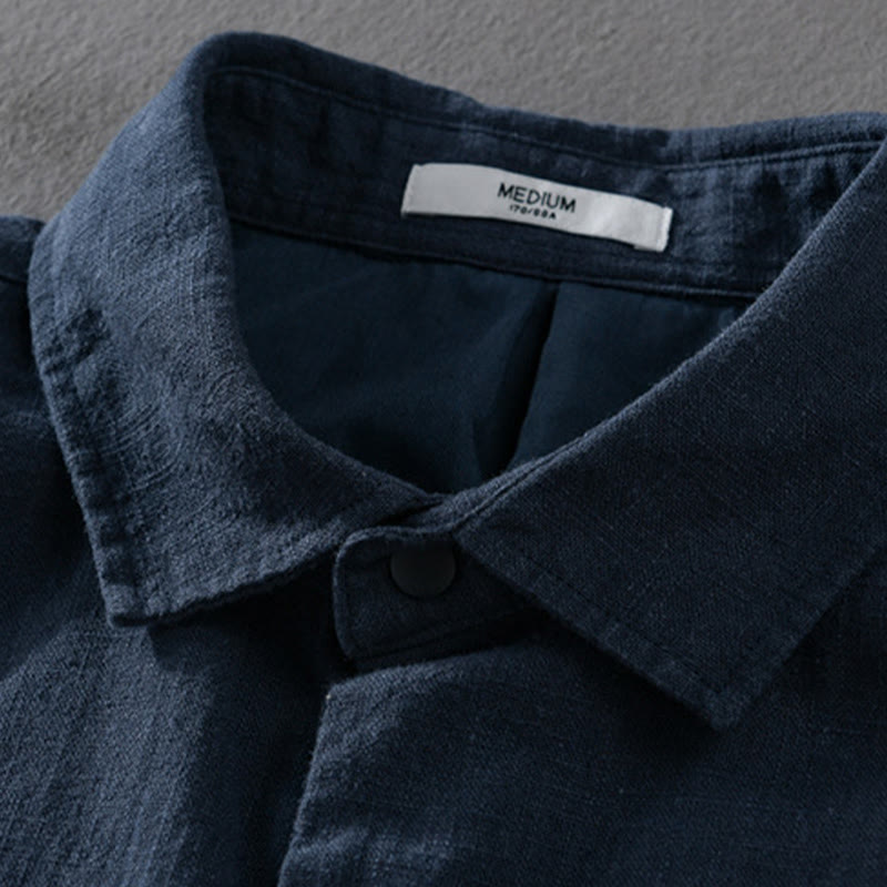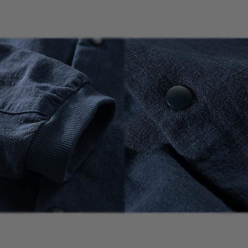 Buddha Stones Ribbed Long Sleeve Design Men's Cotton Linen Jacket Shirt With Pockets