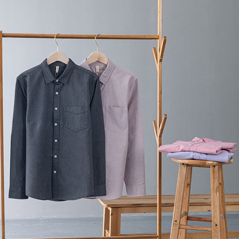 Buddha Stones Solid Color Long Sleeve Buttons Down Design Men Cotton Shirt Clothing