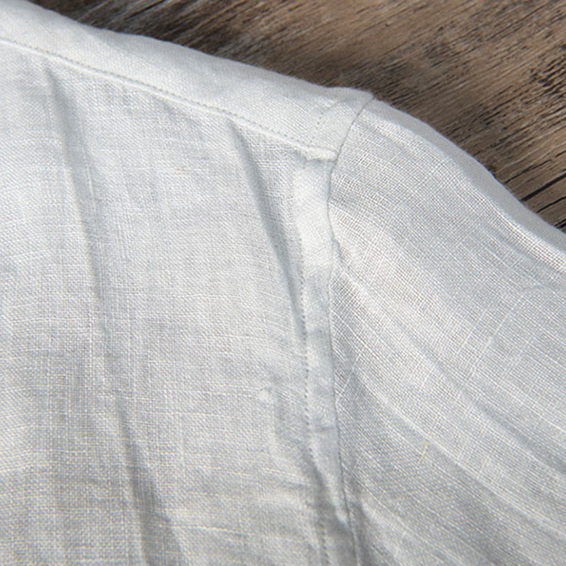 Buddha Stones Solid Color Long Sleeve Half Button Shirt Cotton Linen Men Clothing