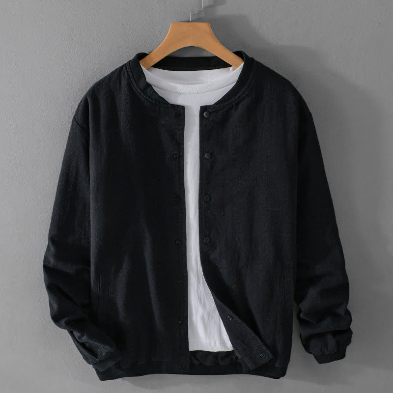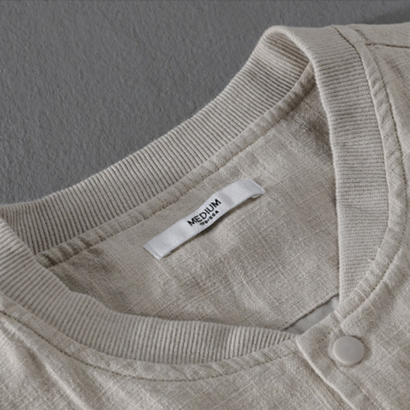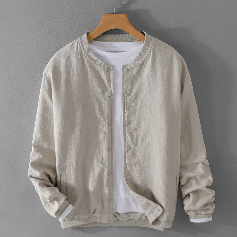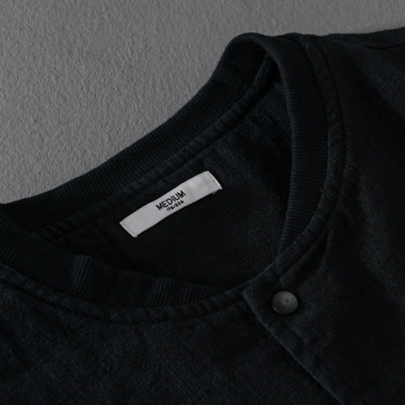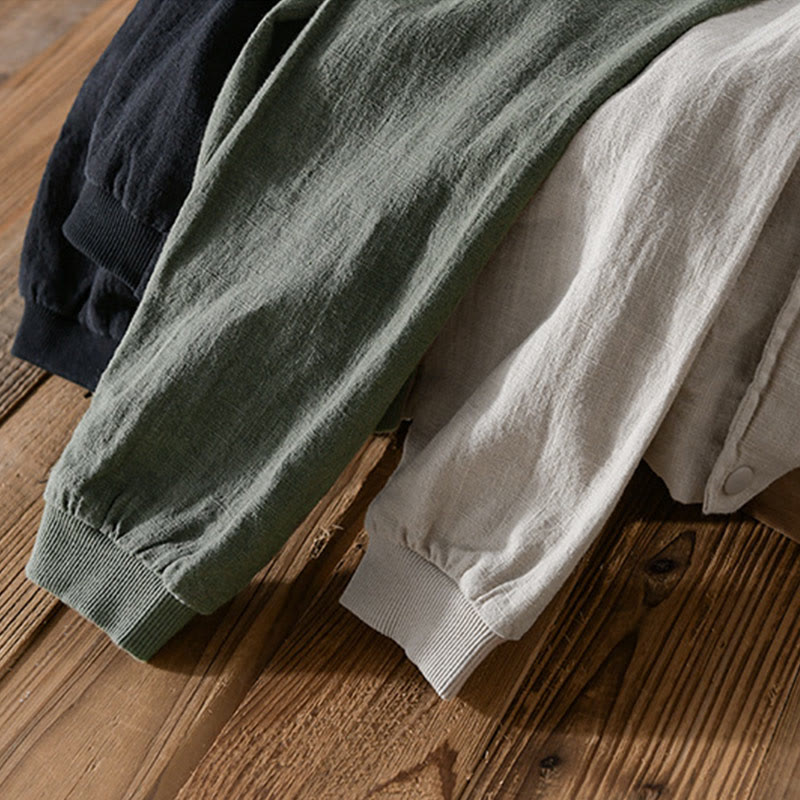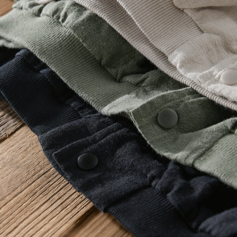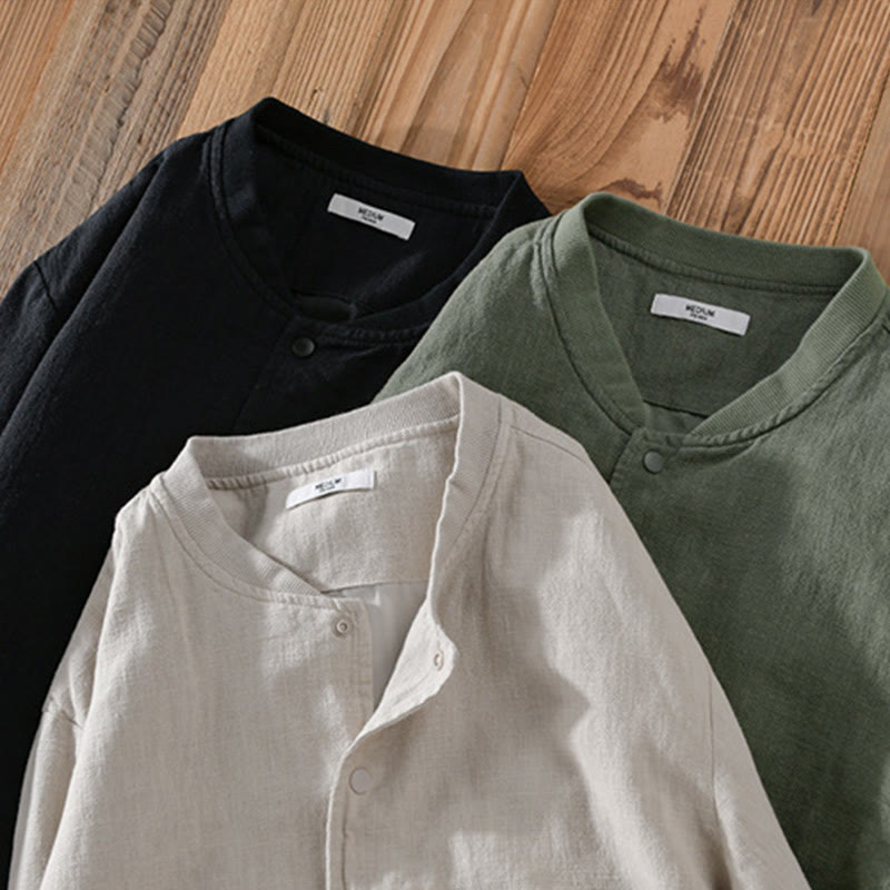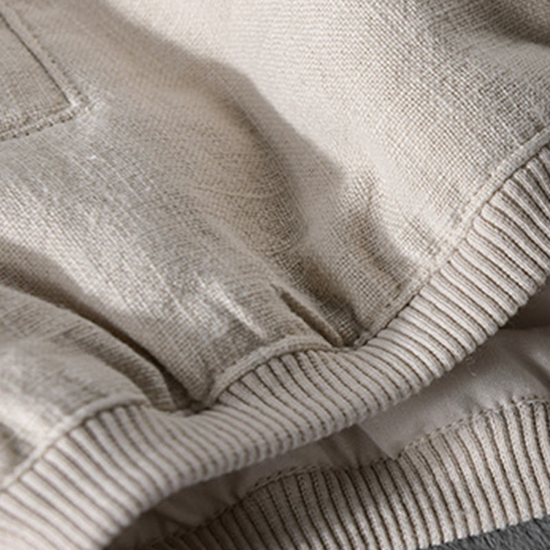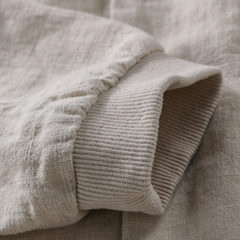 Buddha Stones Solid Color Ribbed Hem Long Sleeve Men's Cotton Linen Shirt With Pockets