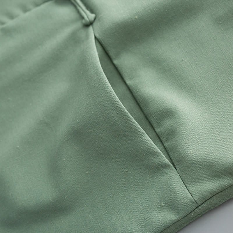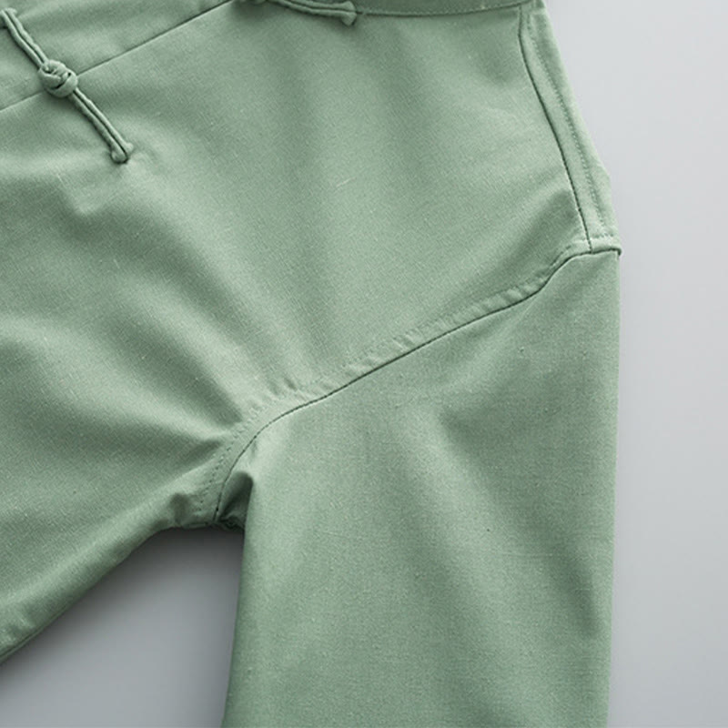 Buddha Stones Solid Embroidered Waves Long Sleeve Frog-Button Cotton Linen Men's Shirt