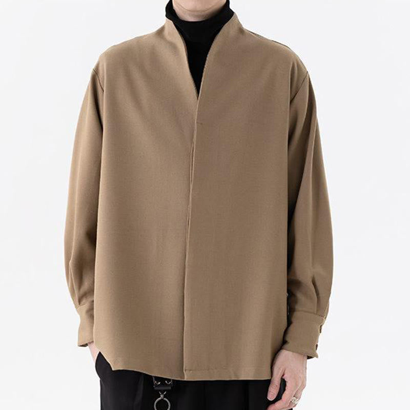 Buddha Stones Solid Fall Long Sleeve Hidden Half Button Design Men's Shirts
