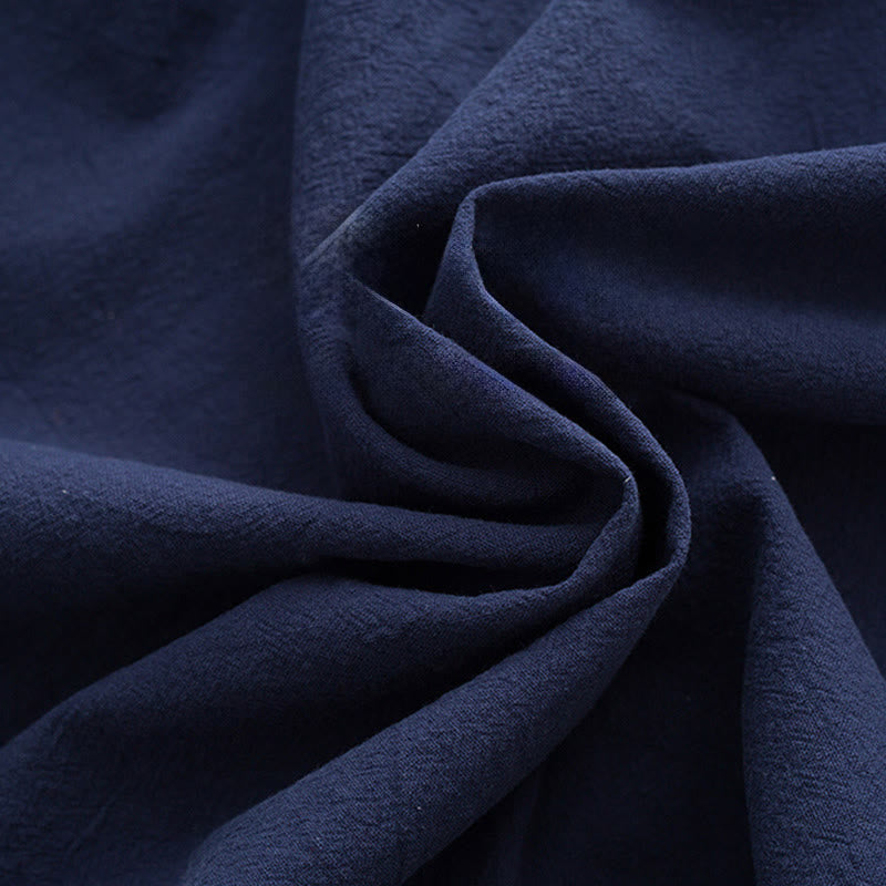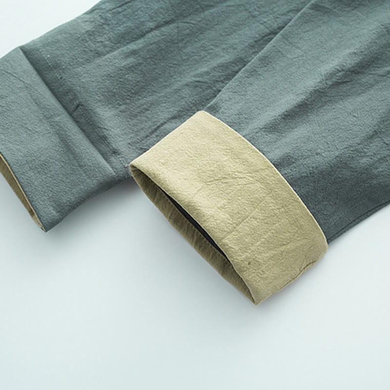 Buddha Stones Solid Long Sleeve Frog-Button Design Cotton Men's Shirt
