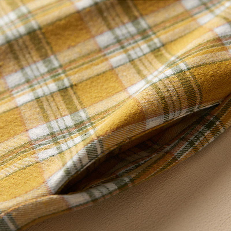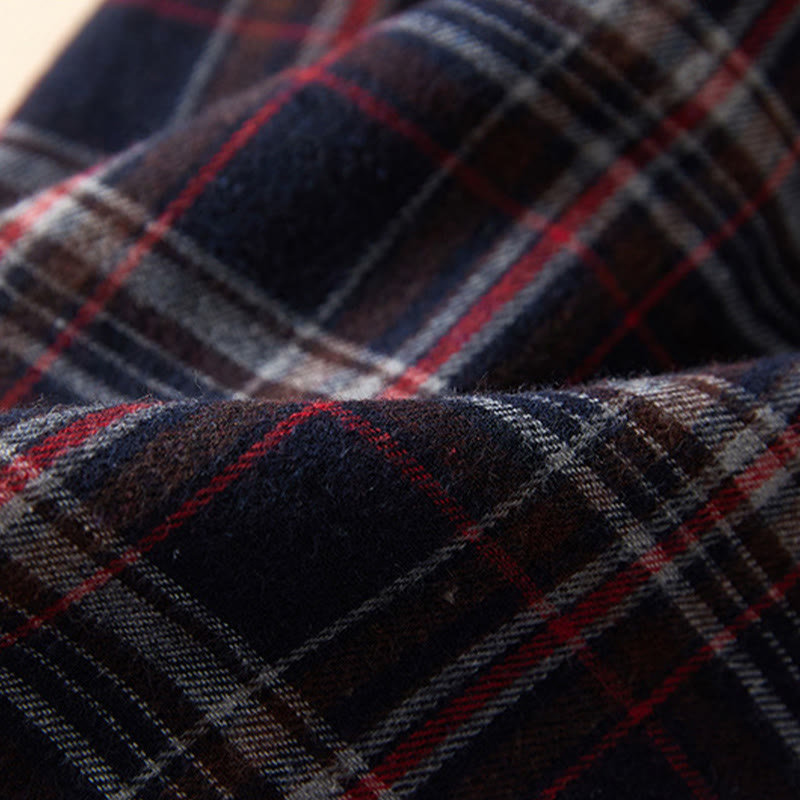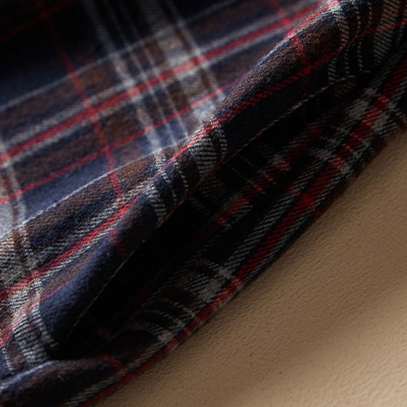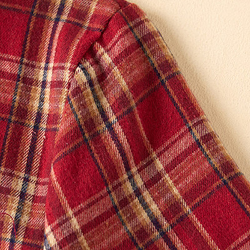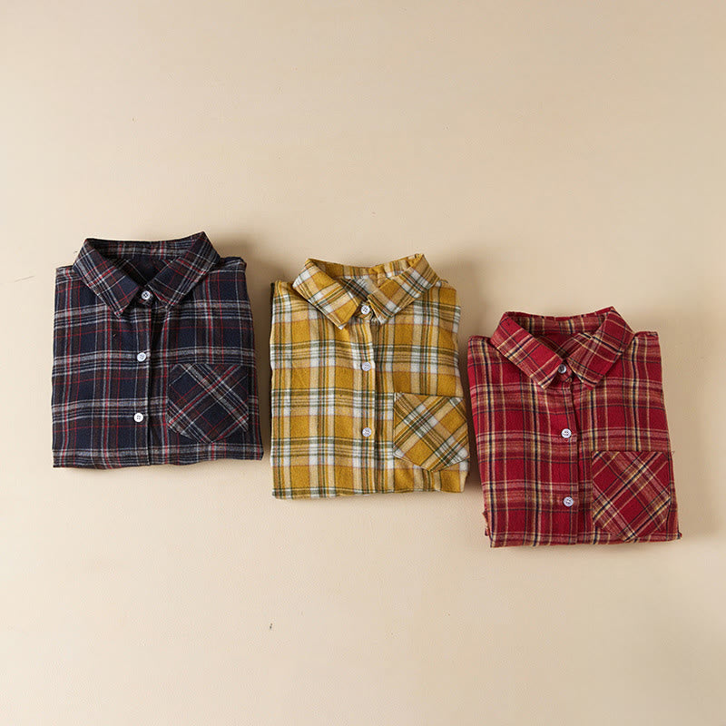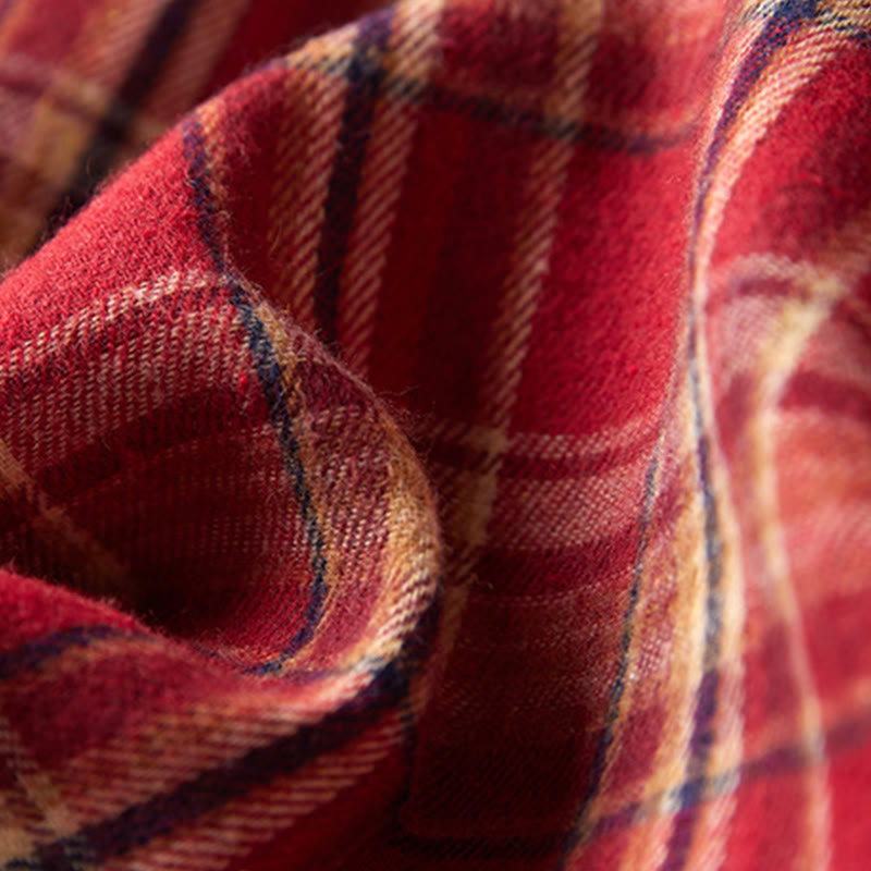 Buddha Stones Spring Color Contrast Plaid Pattern Lapel Long Sleeve Cotton Midi Dress With Pockets