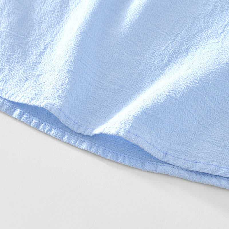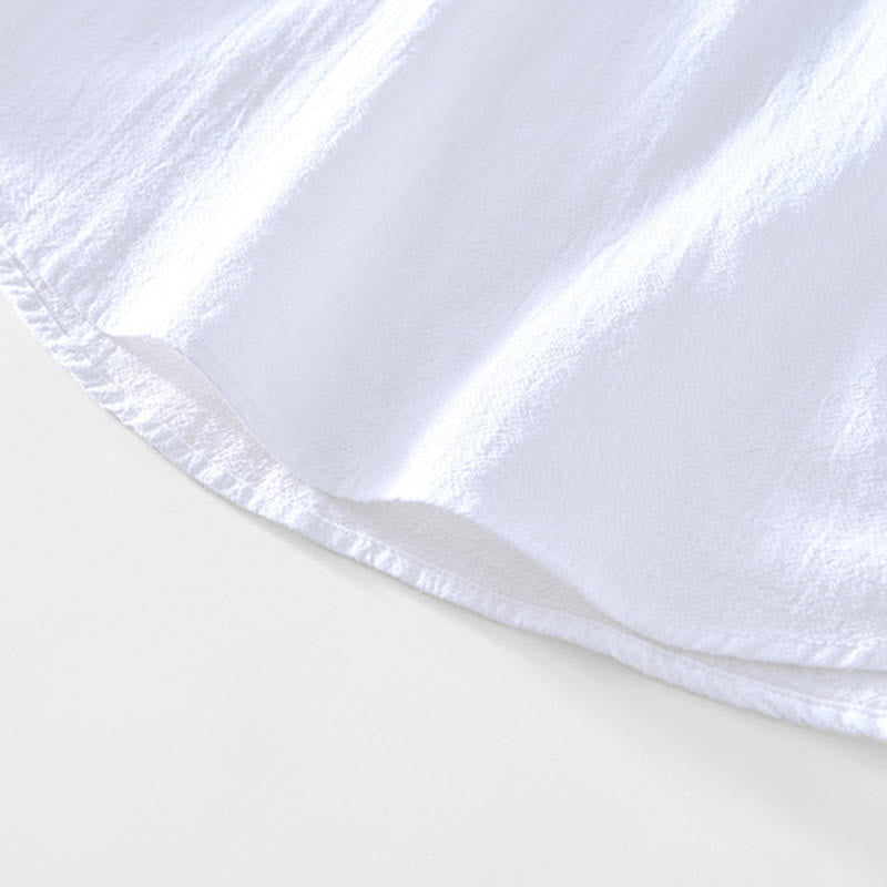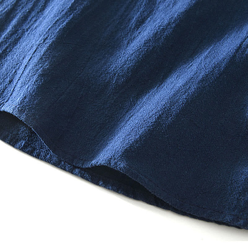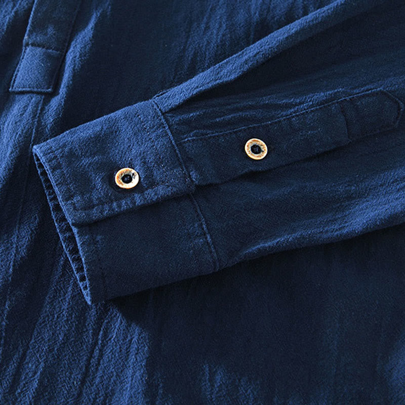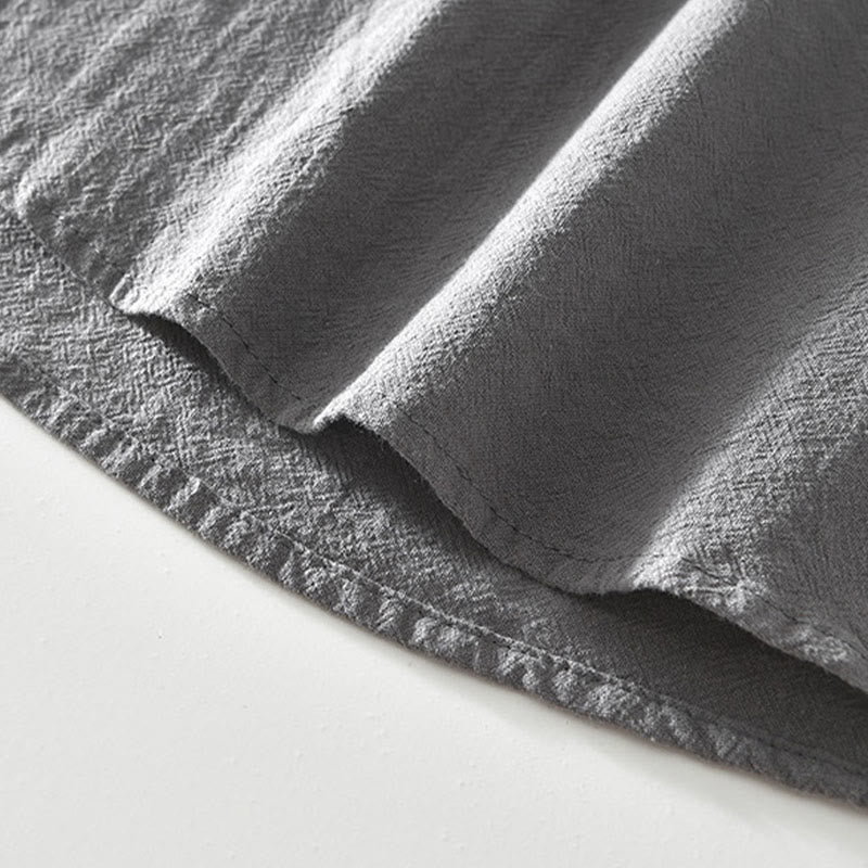 Buddha Stones Spring Fall Solid Long Sleeve Half Button Cotton Men's Shirts