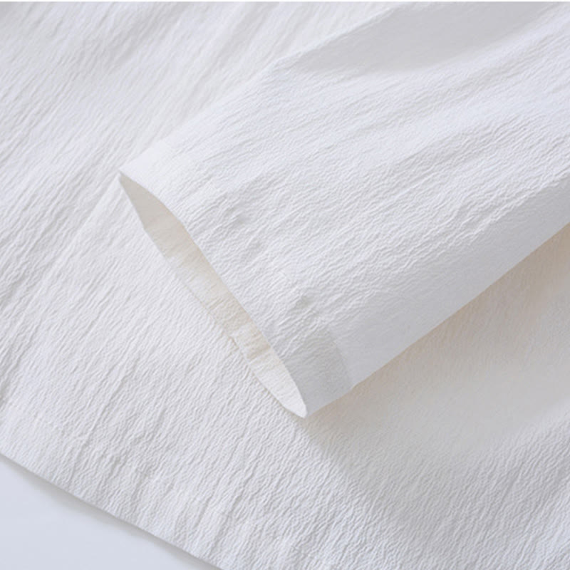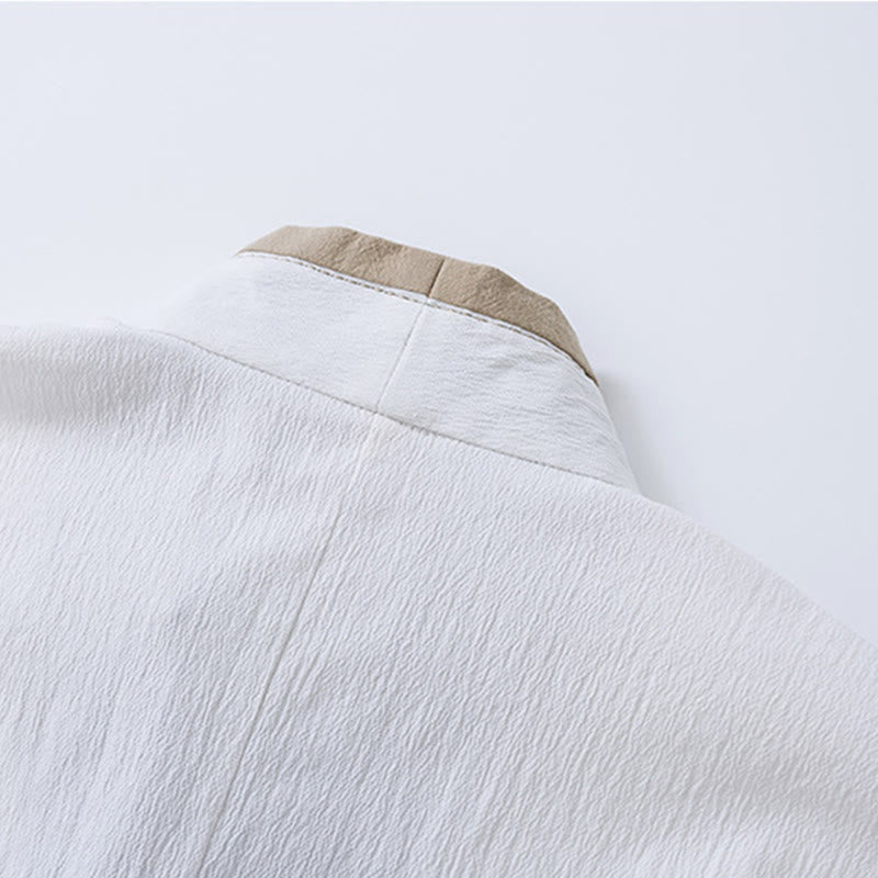 Buddha Stones Vintage Solid Long Sleeve Lace-up Design Cotton Linen Men's Shirt