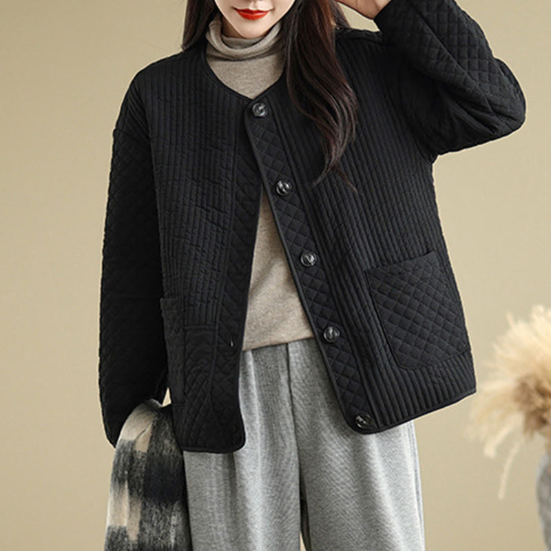 Buddha Stones Women's Vintage Buttons Simple Design Long Sleeve Cotton Jacket With Pockets